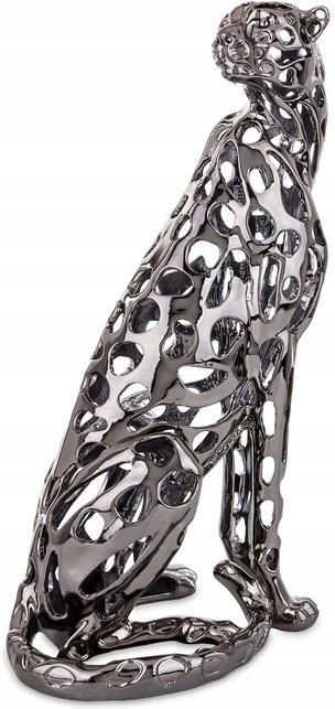 Art-Pol Lampart Srebrna Figurka Ażurowego Kota Rzeźba Glamour Leopard Bochnia