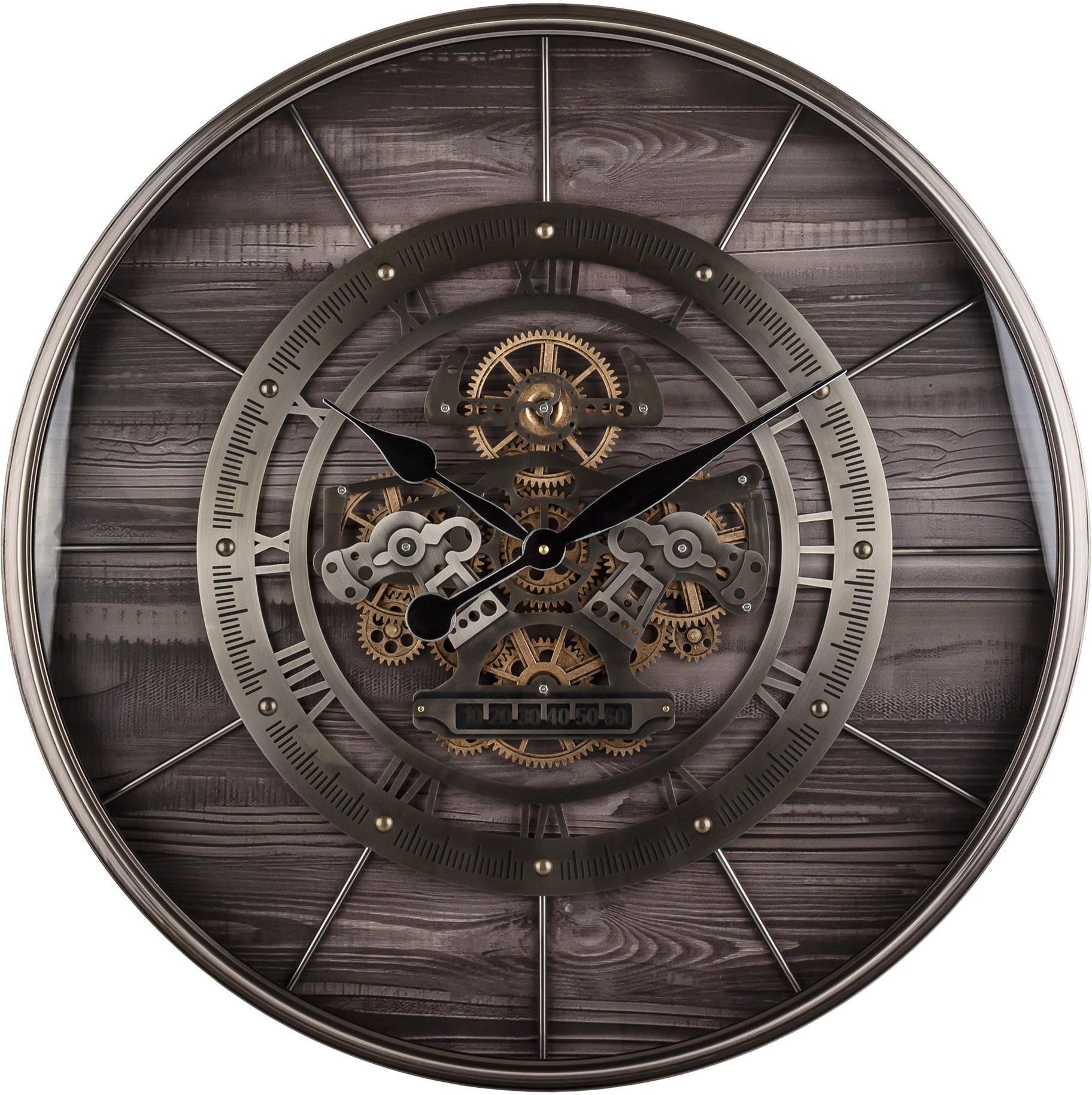 Zegar. Materiał: metal. Rozmiar: 69x69x7,5. Kolor: brązowy, srebrny. Zegar przyda się w każdym wnętrzu.Dekoracja dla miłośników oryginalnych Jest ele...
