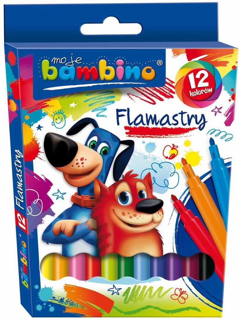 Flamastry, które powinny się znaleźć w plecaku każdego ucznia. Intensywne kolory, długa żywotność, łatwe zmywanie ze skóry i spieranie z odzieży, wentylowana skuwka, odporna na wciśnięcia końcówka pisząca potwierdzają wysoką jakość produktu. Flamastry Bambino produkowane są w zgodności z dyrektywą Parlamentu Europejskiego i Rady w sprawie bezpieczeństwa zabawek oraz rozporządzeniem Ministerstwa Gospodarki w sprawie zasadniczych wymagań dla zabawek, co gwarantuje ich bezpieczeństwo.