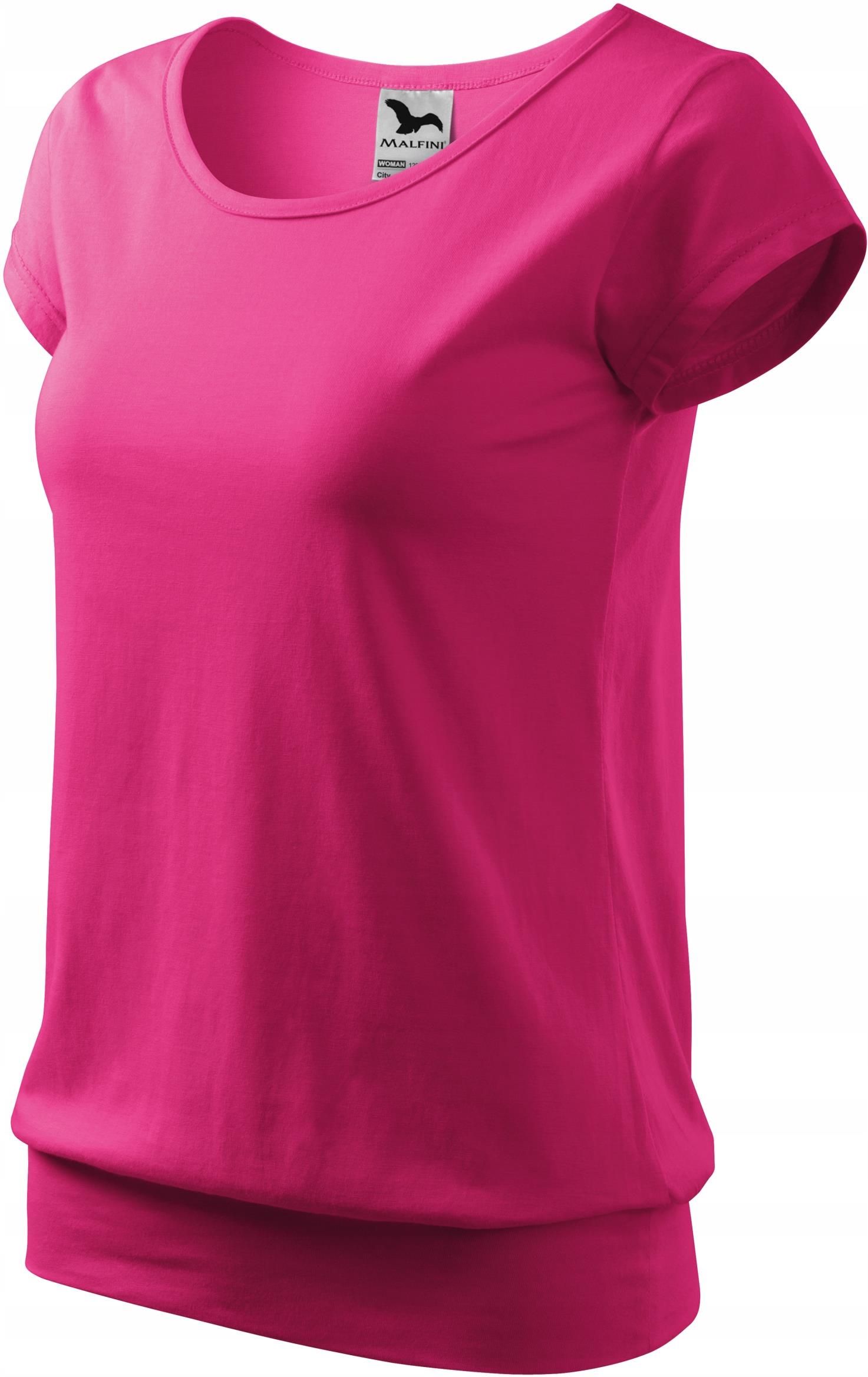 Koszulka damska City Adler (120)Malfini Modna koszulka damska z bardzo krótkim rękawkiem materiał:100% bawełna, wykończenie silikonowe, Single Jersey gramatura 150 g/m2 krój niekrępujący ruchów dolne brzegi wszyte w szerokie lamówki Okrągłe wycięcie z wąską lamówką z tego samego materiału Długość koszulki – do bioder Dzięki preparatowi zmiękczającemu tkanina jest delikatna i miękka w dotyku KOLOR CZERWIEŃ PURPUROWA (40)