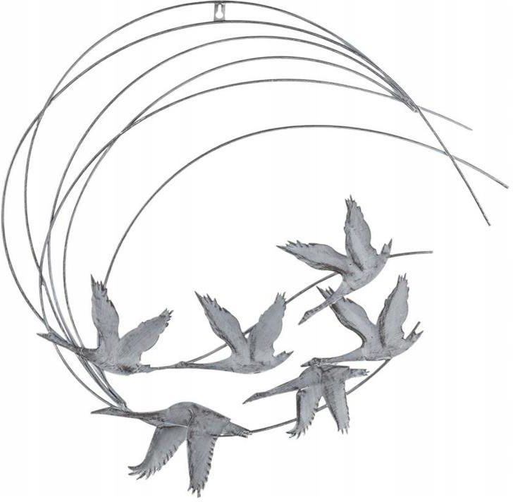 Dekoracja Ścienna metalowa srebrna ptaki koło72x74 Bochnia