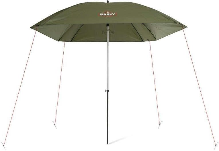 Parasol RAINY jest idealny na krótkie wyprawy wędkarskie, gdy nie chcesz, aby zaskoczyła Cię zła pogoda. Stanowi doskonałą ochronę przed ostrymi promieniami słońca, rosą czy opadami. Jego główne zalety to szybkość i łatwość rozkładania raz niewielka waga. Dodatkowo jednak charakteryzuje się specyficznym, kątowym kształtem kopuły. Dzięki temu parasol pokrywa większą powierzchnię w porównaniu z konwencjonalnym parasolem o tej samej wielkości. Szwy parasola są dokładnie podklejone wodoodporną taśmą, aby zapewnić 100% wodoodporność nawet w przypadku ulewnego deszczu. Wysokość i nachylenie parasola można regulować w zależności od potrzeb, co ułatwi również mocowanie nawet w bardziej nierównym terenie. Max.wysokość parasola (do szczytu kopuły): 215 cm Średnica nad kopułą : 250cm