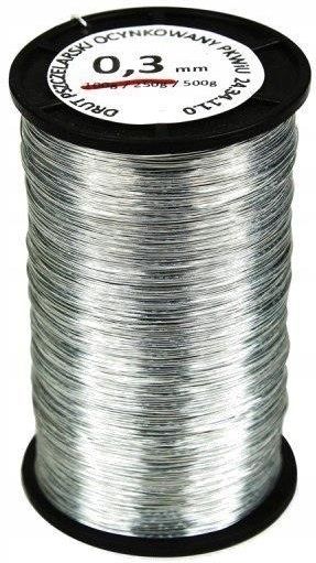 Drut 0,5kg 03 ocynk Art. pszczelarskie Opis:- ocynkowany- średnica 0,3mm- waga 500g
