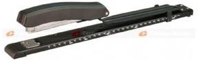 Zszywacz metalowy długoramienny. Zszywa do 100 kartek. Skala w centymetrach i calach. Zintegrowana listwa formatowa. Podstawa nierysująca podłoża. Wskaźnik ilości zszywek.