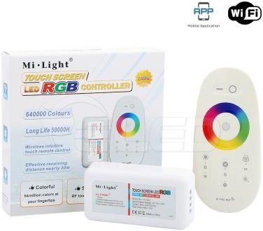 KOMPLET Sterownik pilot Mi-Light RGB PREMIUM RF WiFi do taśm LED FUT025 Dzięki dużemu kolorowemu pierścieniowi można ustawić jedną z 16mln barw. Dołączony pilot umożliwia również wybieranie trybów dynamicznych, sterowanie ich prędkością oraz jasnością światła. Urządzenie pracuje w zakresie 12-24V, …