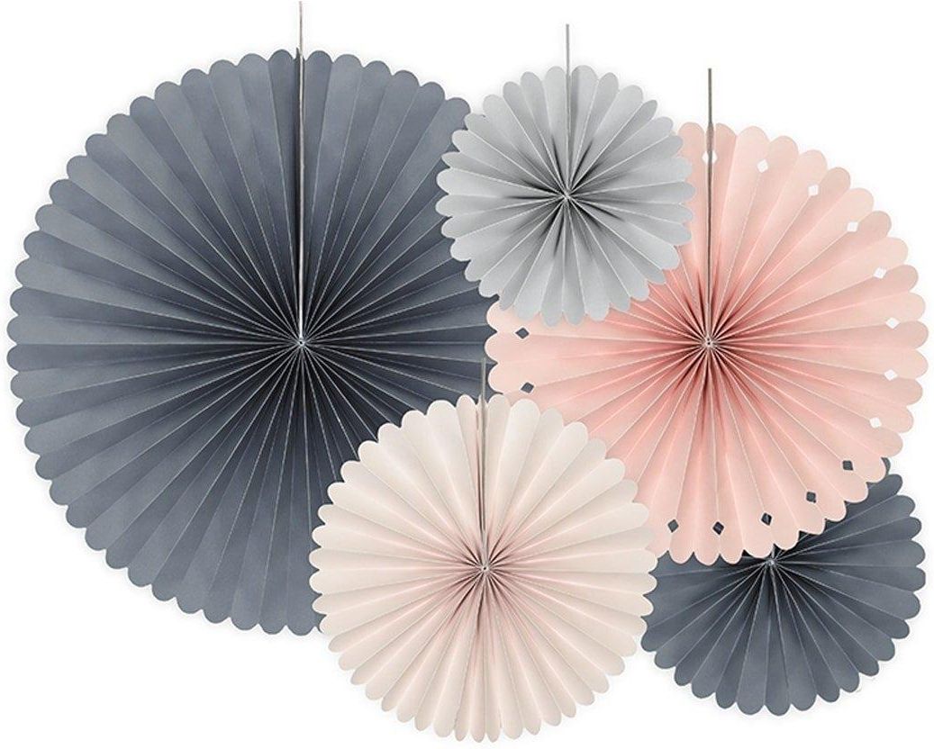 PAPIEROWE ROZETY DEKORACYJNE ELEGANT BLISS 5 SZTUK Rozety dekoracyjne Elegant Bliss Średnice: 38cm, 25cm, 21cm, 19cm i 14cm. Do zawieszenia na załączonym sznureczku. Kolor: brzoskwiniowy, jasnoróżowy, jasnoszary i ciemnoszary. Kod produktu: RPK7. Opakowanie zawiera 5 rozet. Rozety papierowe …