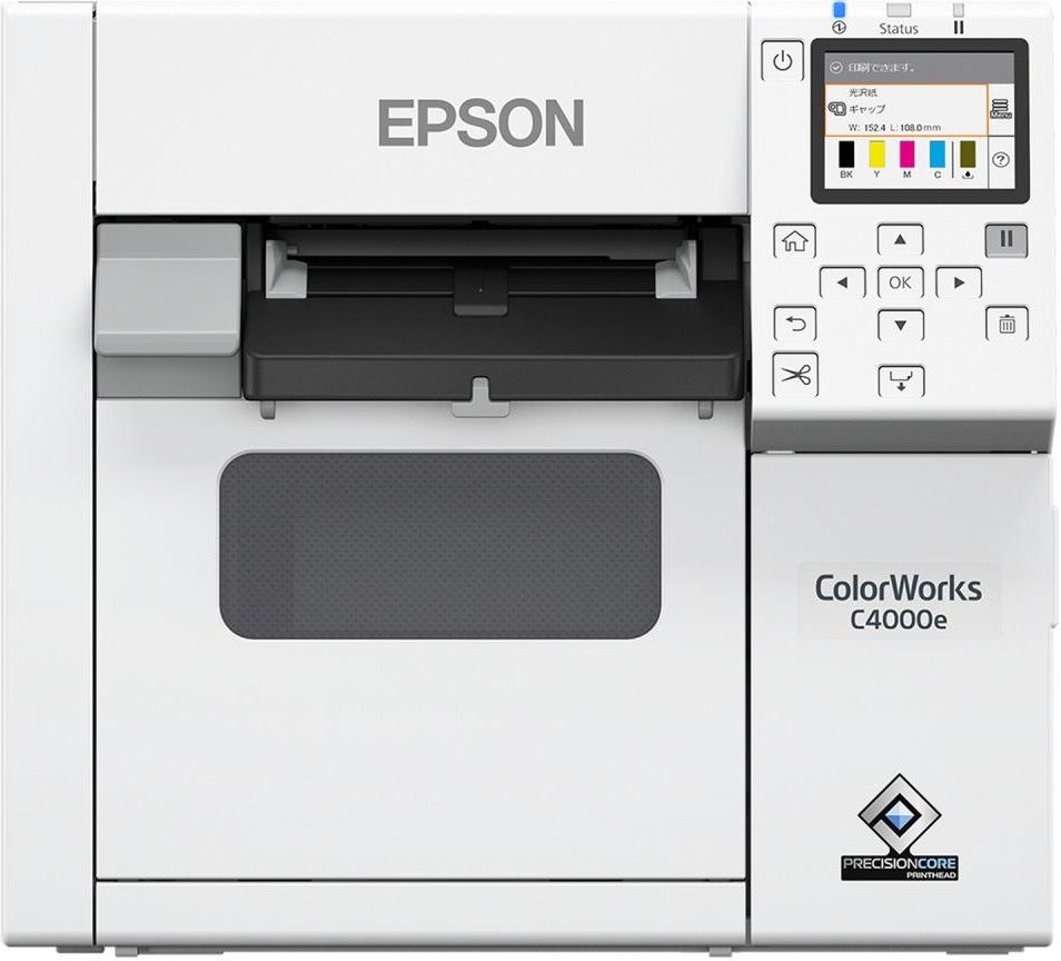 Epson ColorWorks C4000e MK Kolorowa biurkowa drukarka etykiet Kolorowa biurkowa drukarka etykiet wysokiej jakości z czarnym atramentem matowym lub błyszczącym do drukowania etykiet na miejscu i na żądanie w małych i średnich ilościach Drukarki biurkowe z tej serii mają niewielkie wymiary, dzięki czemu są idealne do postawienia na biurku. Seria C4000e oferuje szereg łatwych w obsłudze funkcji i ulepszone opcje łączności, co zapewnia większą elastyczność drukowania. Wysoka jakość druku C4000e to drukarka etykiet z czterokolorowym wydrukiem, która drukuje w wysokiej jakości niezależnie od rozmiaru i materiału etykiety. Te drukarki etykiet w standardzie oferują wysoką rozdzielczość i czterokolorowy druk wysokiej jakości wraz z funkcją dopasowywania kolorów (profil ICC i narzędzie dopasowujące kolory spotowe), która sprawi, że kolorowe etykiety na żądanie będą robiły piorunujące wrażenie. Kompaktowe i proste w użyciu C4000e to bardzo intuicyjna drukarka etykiet gotowa do pracy od razu po wyjęciu z opakowania. Duży wyświetlacz LCD (2,7 cala) ułatwia obsługę. Rolki podłoża można łatwo wymieniać. Model jest również wyposażony w automatyczną gilotynę, którą można łatwo wymienić samodzielnie. Prosta integracja i łączność Gama C4000e jest łatwa do zintegrowania z istniejącymi systemami. Sterowniki są dostępne dla ESC Label, Linux i Mac. Nasze nowe pakiety SDK dla systemów IOS i Android umożliwiają łatwe i intuicyjne drukowanie na tabletach, a także dodanie opcjonalnego klucza sprzętowego Wi-Fi do drukowania z dowolnego miejsca i w dowolnym czasie. Zgodność z ZPLII Błyszczące lub matowe czarne atramenty Model C4000e, dostosowany do konkretnych wymagań w zakresie podłoża, jest dostarczany z czarnym atramentem błyszczącym lub matowym, który zapewnia tworzenie wyraźnego czarnego tekstu i bogatych obrazów na wielu nośnikach. Trwałe atramenty Dzięki indywidualnym wkładom atramentowym można tworzyć szybkoschnące, bardzo szczegółowe etykiety odporne na rozmazywanie, działanie wody i blaknięcie. Najważniejsze cechy Wysoka jakość druku Funkcja dopasowania kolorów i szeroka gama kolorów Prosta obsługa Prosta konfiguracja i intuicyjna obsługa Opcje integracji Idealnie pasuje do istniejących systemów Brak problemów Kompleksowe opcje CoverPlus Z czarnym błyszczącym lub matowym atramentem Dostosowane do typu podłoża