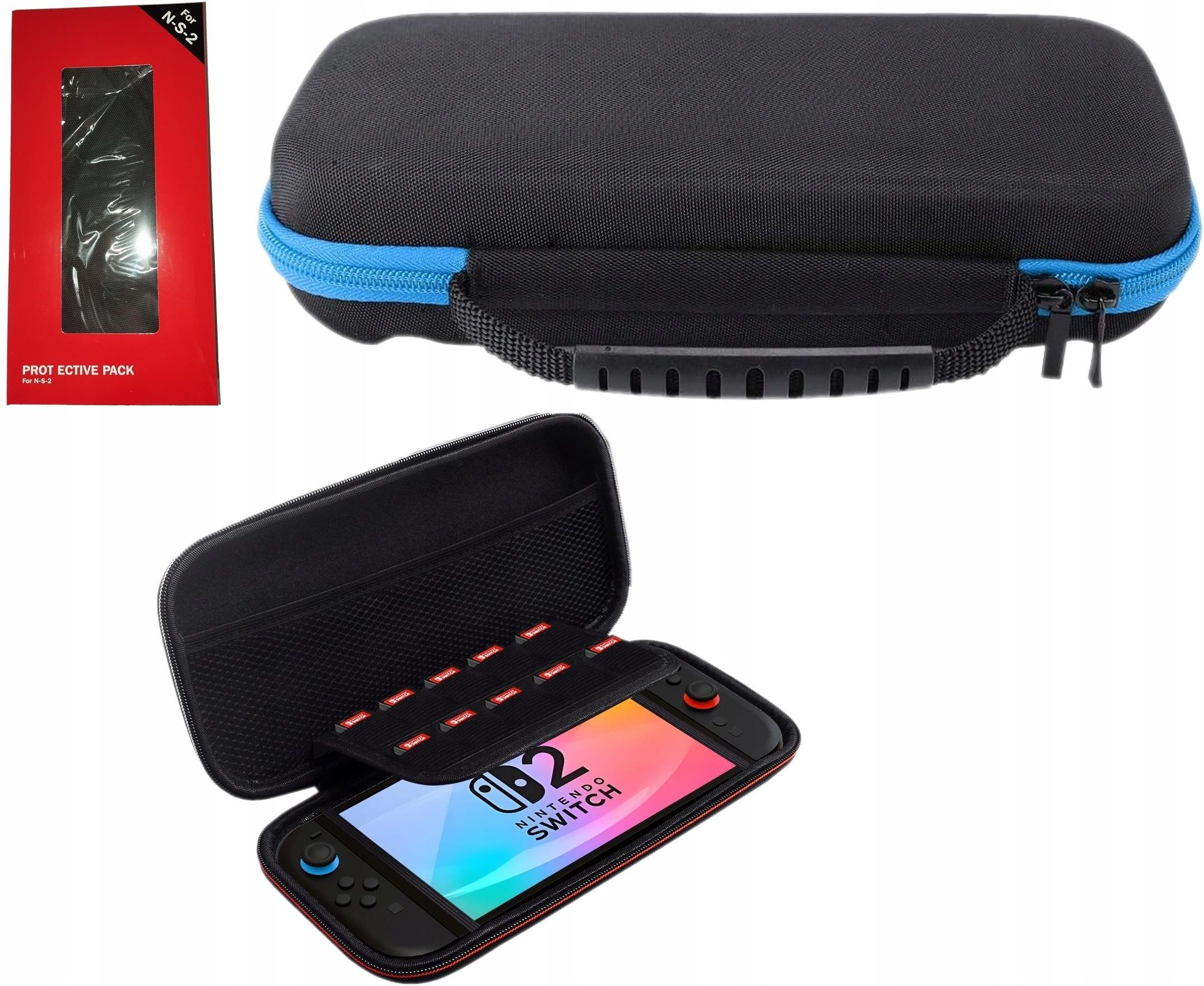 ETUI TORBA TRANSPORTOWA FUTERAŁ HARD CASE POKROWIEC DO NINTENDO SWITCH 2 Twarde etui podróżne do Nintendo Switch 2 Zadbaj o bezpieczeństwo swojej konsoli Nintendo Switch 2 w każdej sytuacji! Wytrzymałe, usztywniane etui transportowe skutecznie chroni sprzęt przed zarysowaniami, kurzem, a także wstrząsami podczas przenoszenia. Wnętrze zostało zaprojektowane tak, aby zapewnić pełen komfort użytkowania – specjalna przegródka pomieści 10 kart z grami, a elastyczne mocowanie stabilnie utrzymuje konsolę na miejscu. Dodatkowo etui wyposażono w praktyczną kieszeń na akcesoria, w której bez problemu zmieścisz kable, ładowarkę czy słuchawki. Pokrowiec wyposażony jest w solidny zamek błyskawiczny oraz praktycznyuchwyt, dzięki czemu świetnie sprawdza się w podróży, w plecaku czy torbie. Elegancki, czarny design nadaje mu uniwersalny i stylowy wygląd. Twoja konsola i akcesoria zawsze bezpieczne – wygodnie i stylowo! Opis Ilość: 1x Futerał transportowy Kolor: Czarny; Kolor zamka: Niebieski; Rozmiar: ~ 29x14x4cm Specjalna przegroda na 10 kart z grami; Elastyczne mocowanie utrzymujące konsolę w miejscu; Specjalna przegroda na akcesoria ( kable, ładowarkę itp.). Opakowanie: Karton producenta; Materiał: kopolimer etylenu i octanu winylu.; odporne na wstrząsy i uderzenia; wodoodporne, nie wchłania wilgoci; trwałe, odporne na pękanie i odkształcenia; przyjemne w dotyku. Pokrowiec pasuje tylko do NINTENDO SWITCH 2 KONSOLA WIDOCZNA NA ZDJĘCIU NIE JEST PRZEDMIOTEM SPRZEDAŻY!
