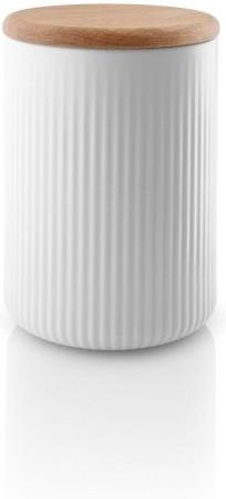 Obserwując, ile wysiłku duńscy szefowie kuchni wkładają w odpowiednie ułożenie dań na talerzu, marka Eva Trio zdecydowała stworzyć odpowiednią linię zastawy stołowej. Jej głównym zadaniem jest podkreślenie jedzenia. Mają być niczym rama dla potrawy. Zadanie postawione przed linią Legio Nova nie było łatwe a jednak zakończyło się pełnym sukcesem. Dany pojemnik kuchenny to kolejna odsłona znanej na całym świecie kolekcji. Duża pojemność 1 l sprawia, że jest on idealny by pomieścić to, na co tylko mamy ochotę. Sprawdzi się idealnie w kuchni na kawę, herbatę czy przyprawy ale również jako pojemnik na małe szpargały w salonie lub sypialni. Klasyczna, biała porcelana przełamana pokrywką z drewna dębowego nie tylko będzie funkcjonalna ale również ozdobi zarówno klasyczne jak i nowoczesne pomieszczenie. Średnica: ok 11 cm.