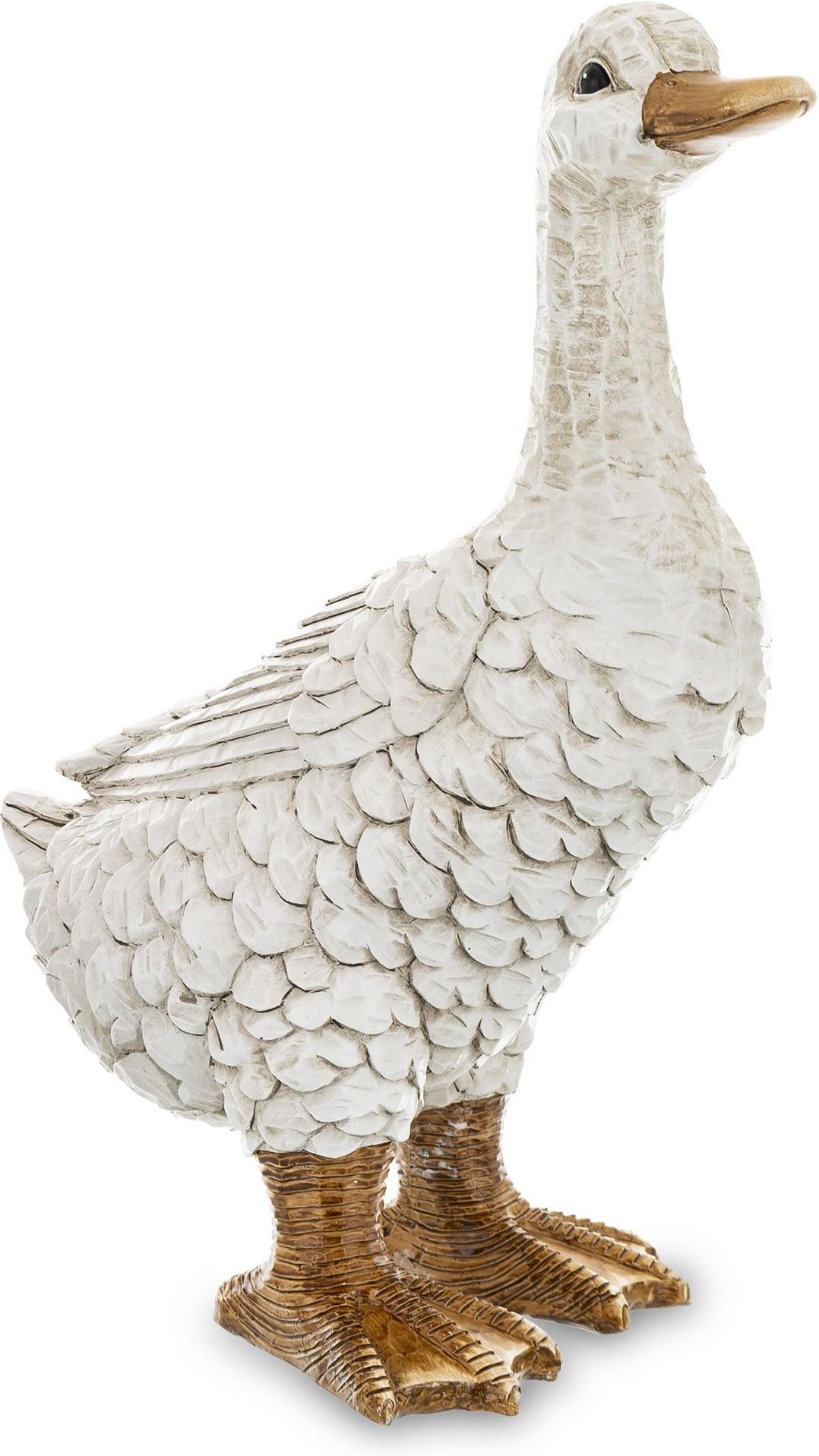 164583 Figurka 30,5 x 13,5 x 20 cm - GĘŚ Od FotoABC - autoryzowanego dystrybutora Cechy Dekoracyjna figurka ogrodowa w kształcie gęsi - idealna dekoracja do domu i ogrodu Wykonana z tworzywa sztucznego odpornego na warunki atmosferyczne (w sezonie zimowym sugerujemy przechowywanie figurki w pomieszczeniu) Rzeczywisty odcień kolorów może się różnić ze względu na indywidualne ustawienia monitora Doskonały pomysł na oryginalny prezent. Charakterystyka Wymiary: 30,5 x 13,5 x 20 cm Waga: ok. 1 kg Materiał: tworzywo sztuczne