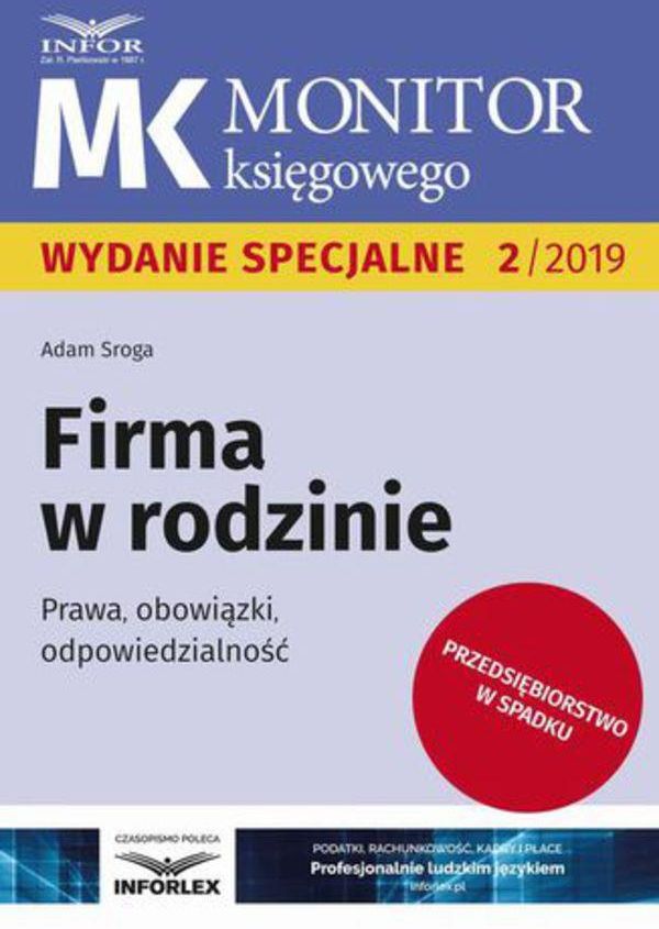 Publikacja w przekrojowy i uporządkowany sposób przedstawia zagadnienia związane z prowadzeniem firmy w rodzinie. Omawia możliwe formy jej prowadzenia, zasady odpowiedzialności i sukcesji. Członkowie rodziny – zazwyczaj współmałżonek i dzieci – często pomagają i faktycznie uczestniczą w działalności przedsiębiorcy, choć to on firmuje tę działalność swoim nazwiskiem i on ponosi odpowiedzialność. Nawet, jeśli tego nie robią, dotyczą ich – bezpośrednio lub pośrednio – skutki decyzji biznesowych, sukcesów i niepowodzeń firmy. Z kolei na jej byt i zakres działania wpływają zdarzenia losowe w życiu prywatnym. Podstawową kwestią do rozstrzygnięcia jest zatem wybór odpowiedniej formy prawnej rodzinnego biznesu. Musi być dostosowana do jego skali oraz do ryzyka, z którym wiąże się określony zakres odpowiedzialności majątkowej. W parze z tą decyzją powinno pójść świadome ukształtowanie ustroju majątkowego w małżeństwie. Najprostszym sposobem realizowania rodzinnego biznesu jest prowadzenie jednoosobowej firmy rodzinnej na podstawie wpisu do CEIDG. Biznes rodzinny może być jednak prowadzony w różnych formach: jako spółka cywilna, jawna, partnerska, komandytowa bądź z spółka z ograniczoną odpowiedzialnością. Uczestnictwo członków rodziny w działalności gospodarczej może przybrać formę sporadycznej pomocy, współpracy lub zatrudnienia na podstawie umowy o pracę bądź umowy cywilnoprawnej. Członkowie rodziny mogą też być wspólnikami w spółkach osobowych bądź udziałowcami w spółce z o.o. To, w jakiej formie członkowie rodziny biorą udział w rodzinnym biznesie, ma znaczenie choćby na gruncie obowiązku ubezpieczenia i odprowadzania składek do ZUS. Publikacja jest skierowana do wszystkich osób prowadzących działalność biznesową lub planujących jej podjęcie. Zawarte w niej informacje zainteresują zarówno samych przedsiębiorców, jak i ich rodziny. Czytelnicy dowiedzą się z niej m.in.: w jakim zakresie i w jakiej formie członkowie rodziny mogą uczestniczyć w działalności przedsiębiorcy, jakie konsekwencje prawne niesie za sobą pomoc doraźna, a jakie współpraca w przedsiębiorcą, jaki jest wpływ ustroju majątkowego na zakres odpowiedzialności właściciela przedsiębiorstwa, jaki jest wpływ formy prowadzonej działalności na zakres odpowiedzialności właściciela przedsiębiorstwa, jakie problemy wiążą się ze śmiercią przedsiębiorcy.