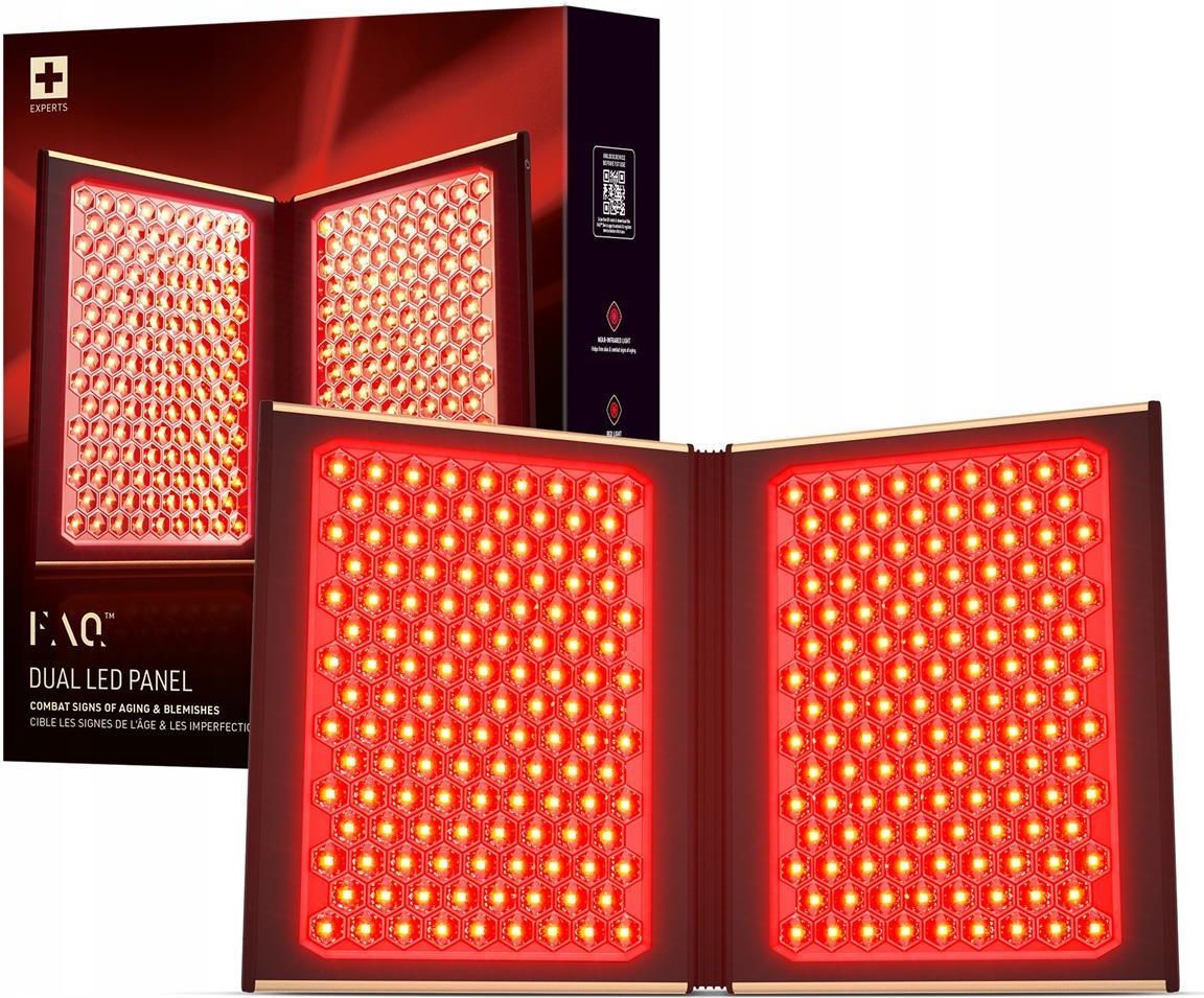 NIEZRÓWNANA MOC DWÓCH PANELI Doświadcz profesjonalnych wyników w domu dzięki FAQ LED Dual Panel, ostatecznemu ulepszeniu w technologii czerwonego światła i podczerwieni. Dzięki imponującym 512 diodom LED w sumie ten dwupanelowy system świetlny podwaja moc naszego standardowego panelu LED, zapewniając zintensyfikowane, zawijane oświetlenie, aby skutecznie redukować drobne linie, zmarszczki, nierówną pigmentację i skazy z wyjątkową szybkością i widocznymi rezultatami. Zaprojektowane z myślą o pełnym pokryciu, dwa lekkie panele otwierają się płynnie pod dowolnym kątem, z łatwością celując w całą twarz, szyję i décolleté. Niezależnie od tego, czy jest umieszczony na eleganckiej regulowanej podstawce, czy używany bez użycia rąk, panel dostosowuje się do Twojej rutyny. Dołączony woreczek podróżny premium zapewnia przenośność, dzięki czemu możesz cieszyć się mocą na poziomie kliniki w dowolnym miejscu — w domu, pracy lub podczas podróży. W swojej istocie urządzenie jest zasilane opatentowanymi soczewkami w kształcie rombu, które powiększają wyjście 256 diod LED o wysokiej intensywności z każdej strony. Ta innowacja gwarantuje głębszą i bardziej równomierną penetrację skóry, maksymalizując rezultaty. Wielokolorowe spektrum jest precyzyjnie zaprojektowane: czerwone i bliskie podczerwieni światło stymulują produkcję kolagenu i wspomagają krążenie, zapewniając gładszą, jędrniejszą skórę; niebieskie światło pomaga celować i minimalizować skazy, zapewniając wyraźniejszą cerę; a bursztynowe światło delikatnie uspokaja widoczne zaczerwienienia i podrażnienia. FAQ LED Dual Panel to nie tylko wysokowydajna lampa na podczerwień i światło panelowe LED, to także luksusowe urządzenie kosmetyczne wykonane z estetyką premium. Wyposażony w elegancką, inspirowaną iPadem sylwetkę i wykończony w matowym złocie, podwaja się jako nowoczesny element Twojej toaletki. Więcej niż tylko urządzenie do pielęgnacji skóry, reprezentuje idealną równowagę maksymalnej mocy i minimalistycznego designu — redefiniując innowacje w zakresie czerwonego światła w domu. FAQ Podwójny Panel LED - 512 Wielokolorowych Diod LED & Urządzenie ze Światłem Podczerwonym - Przenośna Lampa na Podczerwień do Twarzy dla Uśmierzania Bólu, Snu i Poprawy Kondycji Skóry MOC WIELOKOLOROWYGO LED 512 zaawansowanych czerwonych, bursztynowych, niebieskich i bliskich diod podczerwieni LED poprawia tekstrę skóry, wyrównuje koloryt i wspiera promienny, zdrowy wygląd. ŁAGODZI STAWY I MIĘŚNIE Światło boczne, które znajduje się na głębokości, aby umożliwić użycie sztywności fizycznej, dodatkowe zabezpieczenia i akcesoria, które rozprzestrzeniają się po fizycznych. MŁODZIEŃCZA SKÓRA I WŁOSY Czerwone i bliskiej podczerwieni światło wspomaga poprawę tekstury skóry, nadaje młodszy wygląd oraz wspiera pełniejsze i zdrowsze włosy. DODAJ DO KOSZYKA ENERGIA I RÓWNOWAGI Czerwone i bursztynowe światło pomaga regulować rytm dobowy, zwiększa czujność i poprawia koncentrację, przygotowując Cię na produktywny dzień. PRZENOŚNE I ŁATWE W UŻYCIU Lekkie, zasilane przez USB i proste w obsłudze w domu lub w podróży. Regulowane ustawienia i intuicyjna aplikacja pozwalają dostosować sesje do codziennych potrzeb.