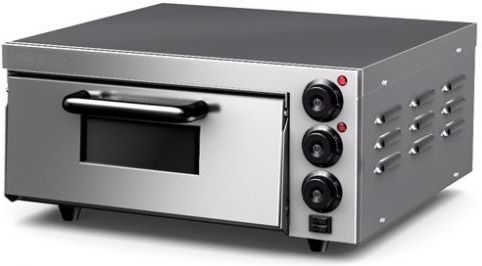 Opis: Piec do pizzy 1-poziomowy z możliwością pieczenia 1 pizzy o średnicy 40cm lub 4 małych pizz o średnicy 20cm. Piec przeznaczony jest do wypieku świeżej oraz mrożonej pizzy, może również służyć do podgrzewania zapiekanek, kanapek itp. Oferowany przez nas piec może pracować w zakresie temperatur od 50 do 350°C. Sterowanie odbywa się za pomocą elektronicznego termostatu oraz timera. Niezależne sterowanie grzałką dolną i środkową oraz górną. Wnętrze każdej komory jest wyłożone na spodzie profesjonalną płytą szamotową oraz posiada oświetlenie. Piec posiada drzwiczki z szybą, która umożliwia swobodny podgląd wypieku. Piec posiada izolację termiczną w wełny mineralnej. Parametry techniczne: Wymiar zewnętrzny: 560x570x280 mm Wymiary wewnętrzne: 400x400x120 mm Zasilanie: 230 V Moc: 1,6 kW Maksymalna temperatura: 350 °C Programator zegarowy 30 minut Pojemność komory: 4x20cm