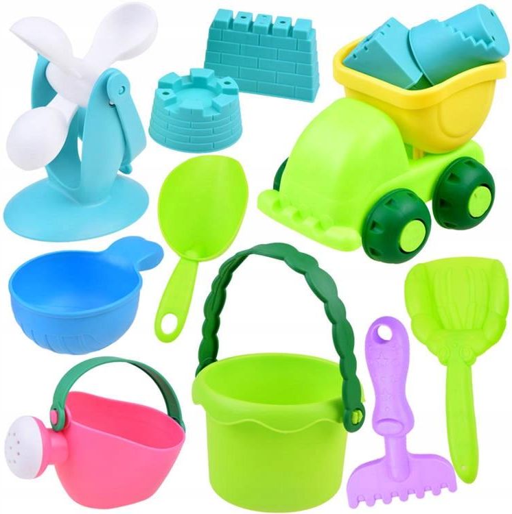 Zestaw do piasku wiaderko foremki autko MIĘKKIE Zestaw do piasku wiaderko foremki autko, który sprawdzi się zarówno podczas zabawy w piaskownicy, jak i w kąpieli. Zabawka wykonana jest z kolorowego plastiku całkowicie bezpieczna dla najmłodszych Pociech. Zestaw posiada wiele elementów, dzięki czemu zabawa nim szybko się nie znudzi. Przyjemna dla oka kolorystyka i ciekawe kształty z pewnością przypadną do gustu każdemu Maluchowi. Zestaw zawiera: autko wywrotka wiaderko łopatka grabki szufelka podbierak konewka kołowrotek foremki do budowli zamku Wymiary: autko wywrotka 16 x 12 x 11,5 cm wiaderko z uchwytem 10 x 12 x 12 cm dł. uchwytu ok.30 cm dł. łopatka 20 cm dł. grabki 15 cm Zestaw zapakowany w poręczną siateczkę. certyfikat:CE wiek:12 m + wymiar opakowania:35 x 20 x 20 cm waga:0,480 kg płeć:dziewczynka, chłopiec, uniseks