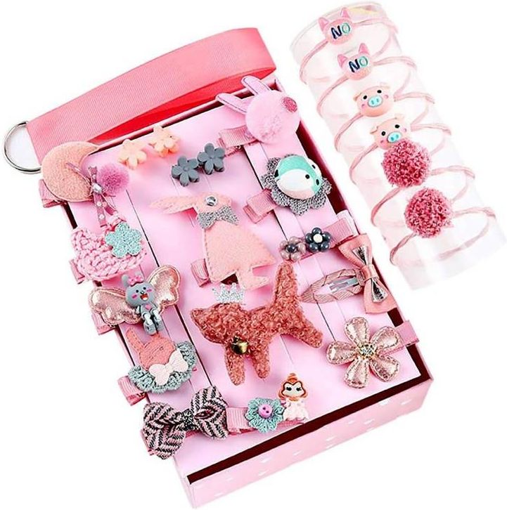 Uroczy zestaw akcesoriów do stylizacji fryzur dla dziewczynki w postaci spinek i gumek do włosów, sprawdzi się podczas nie jednej stylizacji. Zestaw kolorowych gumek oraz spinek, ozdobi każdą stylizację, doda szyku fryzurze. Ozdoby do włosów sprawdzą się idealnie na przyjęcia urodzinowe, bale karnawałowe, wakacyjne fantazyjne fryzury, a także po prostu do przedszkola, na spacer. Zestaw składa się z 24 elementów, które pozwolą na wyczarowanie nietuzinkowych fryzur. W zestawie znajdziesz: - 17 spinek - 6 gumek - tasiemka - pudełko na akcesoria Wymiar pudełka: - 17 x 12 x 4 cm Każda mała dama lubi błyszczeć, a jak ma do tego odpowiednie akcesoria to błyszczenie jest bajecznie proste. Cudowny zestaw do stylizacji fryzur to propozycja dla każdej małej pięknisi. Zestaw zapakowany w eleganckie opakowanie, świetnie nada się na prezent. W sklepie Jokomisiada znajdziesz duży wybór akcesoriów do stylizacji dla małej księżniczki, sprawdź koniecznie.