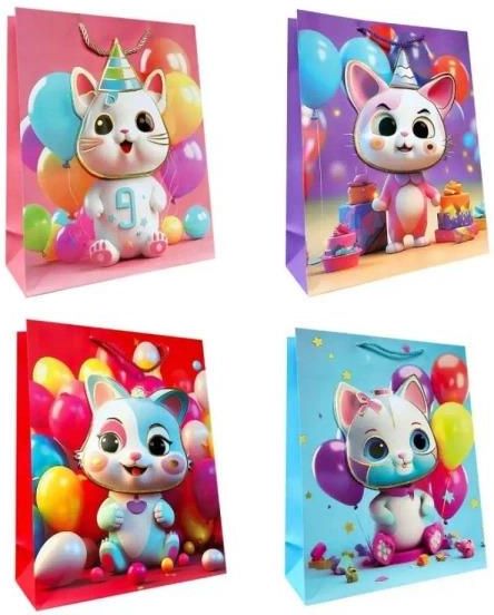 Torebka papierowa dziecięca z wizerunkiem kolorowego urodzinowego kotka wykonana z grubszego papieru o gramaturze 210 g, co zapewnia jej większą trwałość i odporność na obciążenie. Wyposażona w grubszy, kolorowy sznurek, który zapewnia wygodny uchwyt i estetyczne wykończenie. To praktyczne opakowanie, które podkreśla wartość wręczanego prezentu. Torebka posiada elementy metalizowane oraz 3D. W opakowaniu zbiorczym: 12 sztuk (mix wzorów). Rozmiar: 18X23X10 cm Szerokość dna: 10 cm Gramatura: 210g Mix wzorów, towar wysyłany losowo. Cena za sztukę. EAN: 5905868102758