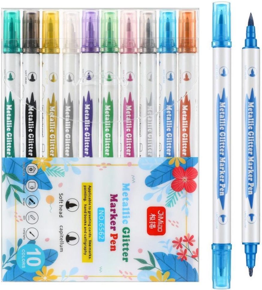 METALICZNE DWUSTRONNYM PISAKÓW Z BROKATEM - ZESTAW 10 SZTUK Wprowadź kreatywność na nowy poziom z zestawem Metalicznych Pisaków z Brokatem! Wysokiej jakości pisaki oferują intensywne, wyraziste kolory z metalicznym połyskiem oraz subtelnym brokatowym efektem, który nadaje każdemu projektowi …