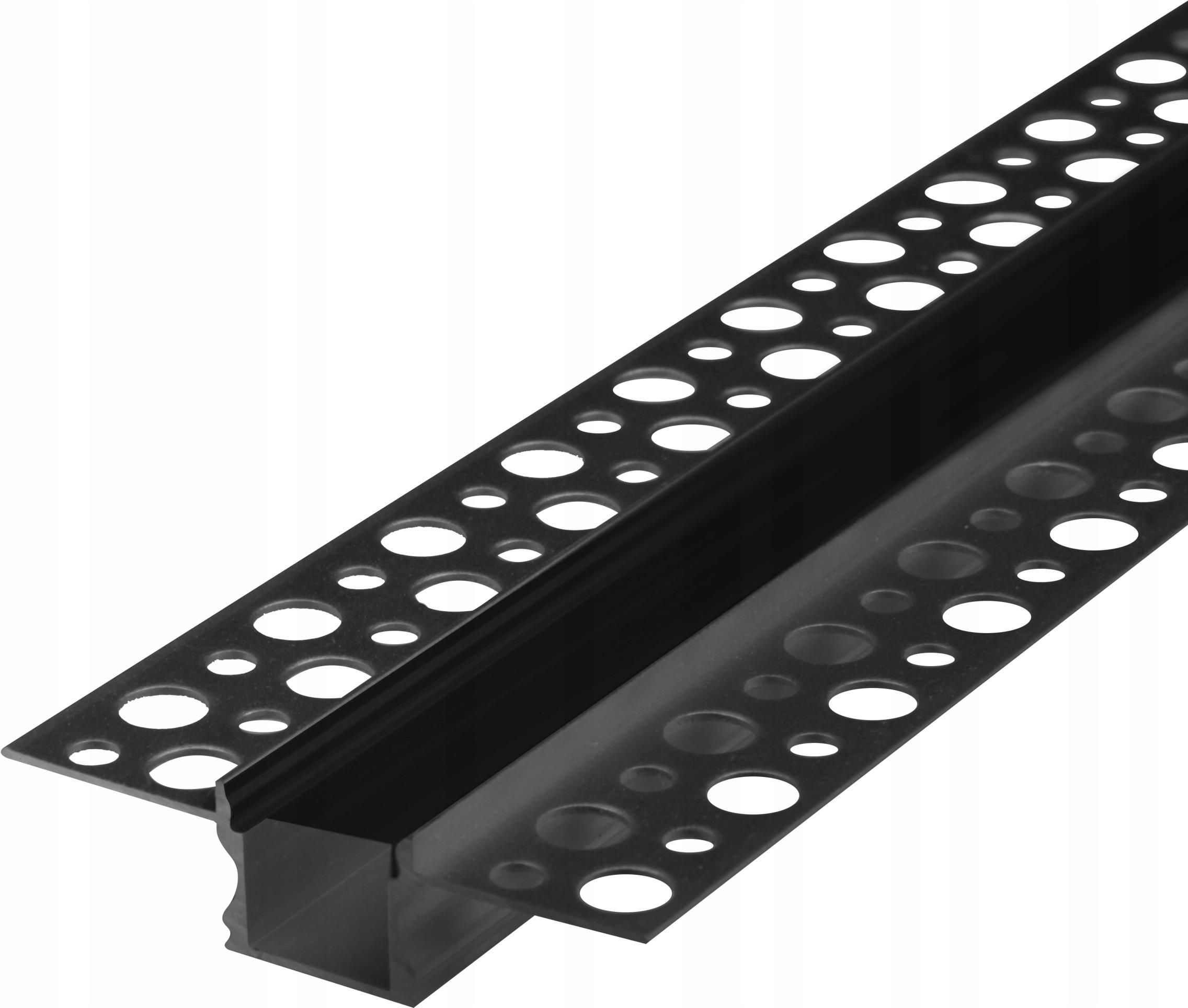 Profil Led Masterled GK 12mm 2m czarny + klosz czarny / transparentny (1694 + 1693, 0956, 0955) Główne zalety produktu Nowoczesne i doskonałe rozwiązanie dla twojego domu czy biura. Profil wpuszczany dzięki zastosowaniu mlecznego klosza, pozwala uzyskać jednolitą linię światła na całej powierzchni. Profile posiadają specjalną obudowę pozwalającą w łatwy sposób osadzić profil. Profile są wygodnym rozwiązaniem w montażu taśm LED o max. szerokości 12mm. Łatwy montaż i demontaż dzięki wygodnemu rozwiązaniu klosza na KLIK. Wysoka skuteczność odprowadzania ciepła dzięki zastosowaniu aluminium. Uwaga! Przy zakupie prosimy o podanie wybranego typu klosza. Profil zamontować można w płytach karton-gipsowych. Po zagipsowaniu aluminiowe części nie są widoczne. Profil w zestawie z kloszem Profile posiadają specjalną obudowę pozwalającą w łatwy sposób osadzić profil. Taśmy LED, sterowniki oraz zasilacze dostępne są na naszych pozostałych aukcjach Specyfikacja Materiał: Aluminium anodowane Wymiary: 5,8 x 1,45 x 200 [cm] Szerokość korytka: 12mm Kolor: Czarny / Transparentny / mleczny