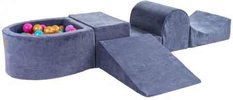 Meowbaby Foam Playset With Small Ball Pit Playground For Children With 100 Balls Certified Velvet Blue-Gray: Gold/Dark Pink/Lilac/Turquoise Bochnia
