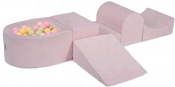 Meowbaby Foam Playset With Small Ball Pit Playground For Children With 100 Balls Certified Velvet Light Pink: White Pearl/ Light Green/Pastel Pink/ Bochnia