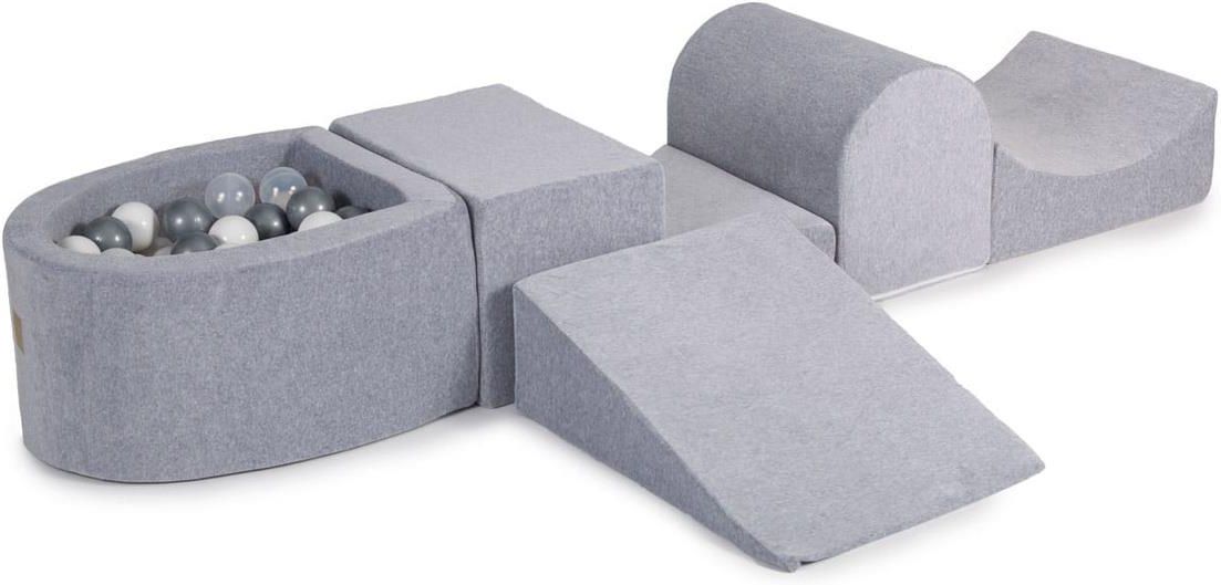 Meowbaby Piankowy Zestaw Do Zabawy Jasnoszary + Komplet 100 Piłeczek Srebrne Białe Perłowe Transparentne Bochnia