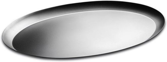 Taca owalna (46 cm) Frozen Mepra Podstawowe informacje Marka: Mepra Kod produktu: 200122 Kolor: srebrny Materiał: stal nierdzewna Wymiary: 46 x 31 cm (dł. x szer.) Pojemność: Na tacy owalnej Frozen Mepra podasz kawę oraz ciasto dla kilku osób Ma dużą powierzchnię – dł. 46 cm, dzięki czemu zmieści się na niej sporo produktów. Taca posiada również lekko podniesione brzegi, które zabezpieczają przed zsunięciem się naczyń oraz pełnią funkcję uchwytów. Taca Frozen Mepra wygląda ładnie znacznie dłużej niż standardowe tace stalowe Produkt jest wykonany ze stali nierdzewnej 18/10 i wykończony na matowo techniką piaskowania, zwaną również „metal brill”. Dzięki temu naczynie ma satynową powierzchnię odporną na nieestetyczne odbicia palców oraz zadrapania. Tacę owalną Frozen Mepra łatwo umyjesz w zmywarce Wysoka jakość materiału oraz wspomniane wykończenie sprawiają, że bezpiecznie możesz umieścić ją w zmywarce. Dzięki minimalistycznemu wyglądowi taca pasuje do wielu jadalni. Bez obaw wybierzesz ją jako praktyczny prezent na parapetówkę.