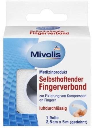 Mivolis Bandaż samoprzylepny na palec 2,5 cm x 5 m (po rozciągnięciu) 1 rolka 5 m Bandaż samoprzylepny na palec marki Mivolis idealnie się nadaje jako lekkie wsparcie wiązadeł i stawów, do podtrzymywania kompresów na palcach i opuszkach lub jako dodatkowa ochrona bandaża i szyn. Bandaż klei się …