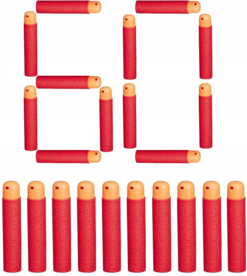 60 strzałek do wyrzutni Nerf N-Strike MEGA Strzałki Mega to nowa linia strzałek zapewniająca niesamowicie daleki zasięg wyrzutnią z serii Mega. Strzałki wykonane są z lekkiej pianki z gumowymi czołem z dwoma otworami, dzięki którym świszczą w locie. Doskonała zabawa dla każdego chłopca Bezpieczne strzałki Dla dzieci od 8 roku życia Wymiary strzałki: średnica 2 cm, długość 9,5 cm Kolor: czerwony NIE POZWÓL SIĘ ZŁAPAĆ Z PUSTĄ WYRZUTNIĄ! To nie zabawa kiedy strzałki kończą się w trakcie ważnego starcia. Nie daj się złapać z pustą wyrzutnią! Kup charakterystyczne czerwone strzałki, załaduj swoją wyrzutnię dodatkowymi strzałkami i wracaj na pole bitwy. Zabawa kończy się wraz z amunicją, zadbaj by Twoje dziecko zawsze miało jej pod dostatkiem.