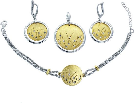NorbiSrebro Przepiękny Srebrny Komplet Rodowany i Pozłacany z Cyrkoniami G-1 Bochnia