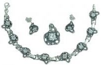 Piękny Srebrny Oksydowany Komplet z Cyrkoniami n !!! Wspaniała Jakość i Atrakcyjność Wyrobu w Stosunku do Ceny. Próba 925 Waga - Bransoletka 12,7 g. Wisiorek 3,3 g. Kolczyki (sztyft lub wiszące) 2,4 g. Długość - Bransoletka 18 cm. + ewentualne przedłużenie łańcuszkowe Wisiorek 2,2 cm. Kolczyki 1,4 cm na sztyft. merdający lub wiszące na biglu merdającym Szerokość - Bransoletka 1,3 cm Wisiorek 1,3 cm. Kolczyki 1 cm.