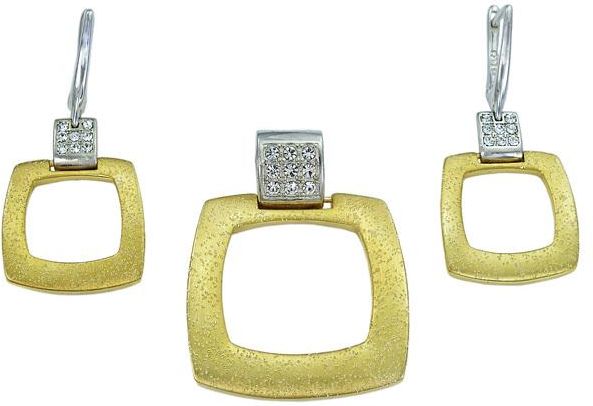 NorbiSrebro Srebrny Rodowany i Pozłacany Komplet z Cyrkoniami G-1 Bochnia