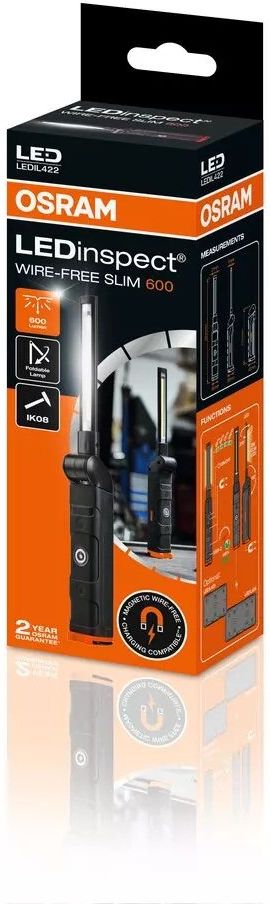 Ledinspect wire-free slim 600. Rodzaj lampy: LED Napięcie [V]: 3,7 Moc znamionowa [W]: 5 Natężenie światła [lm]: 600 Temperatura koloru [K]: 5700 Masa [g]: 240 Rodzaj połączenia: Pudełko
