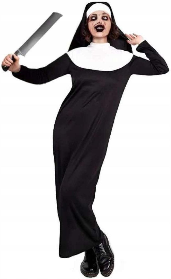 Party Deco Strój Zakonnica Czarny Habit Biały Kornet Siostra Zakonna Halloween Kostium Bochnia