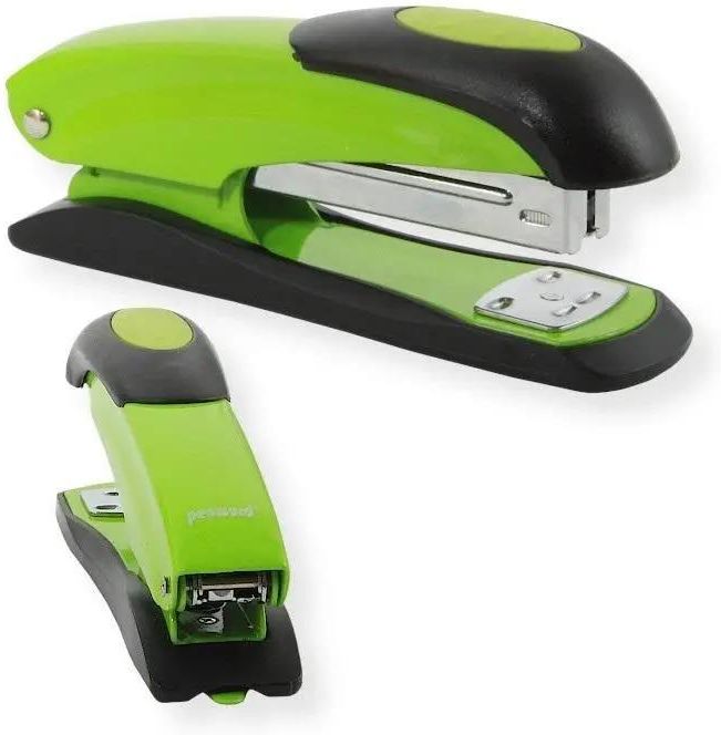 Zszywacz wykonany z metalu i tworzywa. Metalowa konstrukcja gwarantuje dobrą jakość. Obrotowy mechanizm umożliwia nam zszywanie tapicerskie, na zewnątrz i do wewnątrz. Dzięki temu zszywamy dokumenty lub tymczasowo spinamy.