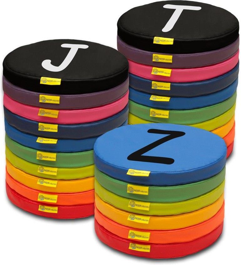PODUSZKI ALFABET Poduszki zestaw ALFABET A-Z to ważny element wyposażenia każdego animatora, przedszkola i szkoły. Poduszki mają szerokie zastosowanie w pracy z grupą. Idealnie sprawdzą się we wszelkiego rodzaju zajęciach edukacyjnych i integracyjnych. To doskonałe narzędzie do gier zespołowych w pomieszczeniach jak i w plenerze, umożliwia czerpanie radości płynącej z ruchu i przebywania w grupie. Poduszki wypełnione są wkładem z gąbki, co sprawia że są wygodne a zarazem lekkie i bezpieczne, dzięki czemu mogą nawet spełnić rolę dysku do rzucania! Materiał: barwny, wytrzymały. Kolory pokrowców: czarny, fioletowy, różowy, granatowy, błękitny, ciemny zielony, jasny zielony, żółty, pomarańczowy, czerwony. Średnica: 30 cm Wysokość:3 cm Zestaw zawiera: 26 sztuk poduszek ze zdejmowanymi pokrowcami z nadrukiem litery od A-Z Opakowania: 2 x 10 sztuk + 1 x 6 sztuk Produkt zalecany dla dzieci powyżej 3 miesiąca życia Produkt polski Centrum Akson jest producentem chust animacyjnych akson, a także woreczków i szarf gimnastycznych, tuneli animacyjnych, kolorowych piłeczek do suchych basenów i zabaw z chustą i wielu innych akcesoriów edukacyjnych i animacyjnych. Od lat jest też propagatorem Pedagogiki Zabawy i Pedagogiki Cyrku w Polsce i poza granicami kraju. Kupuj najlepsze! Kupuj u źródła!