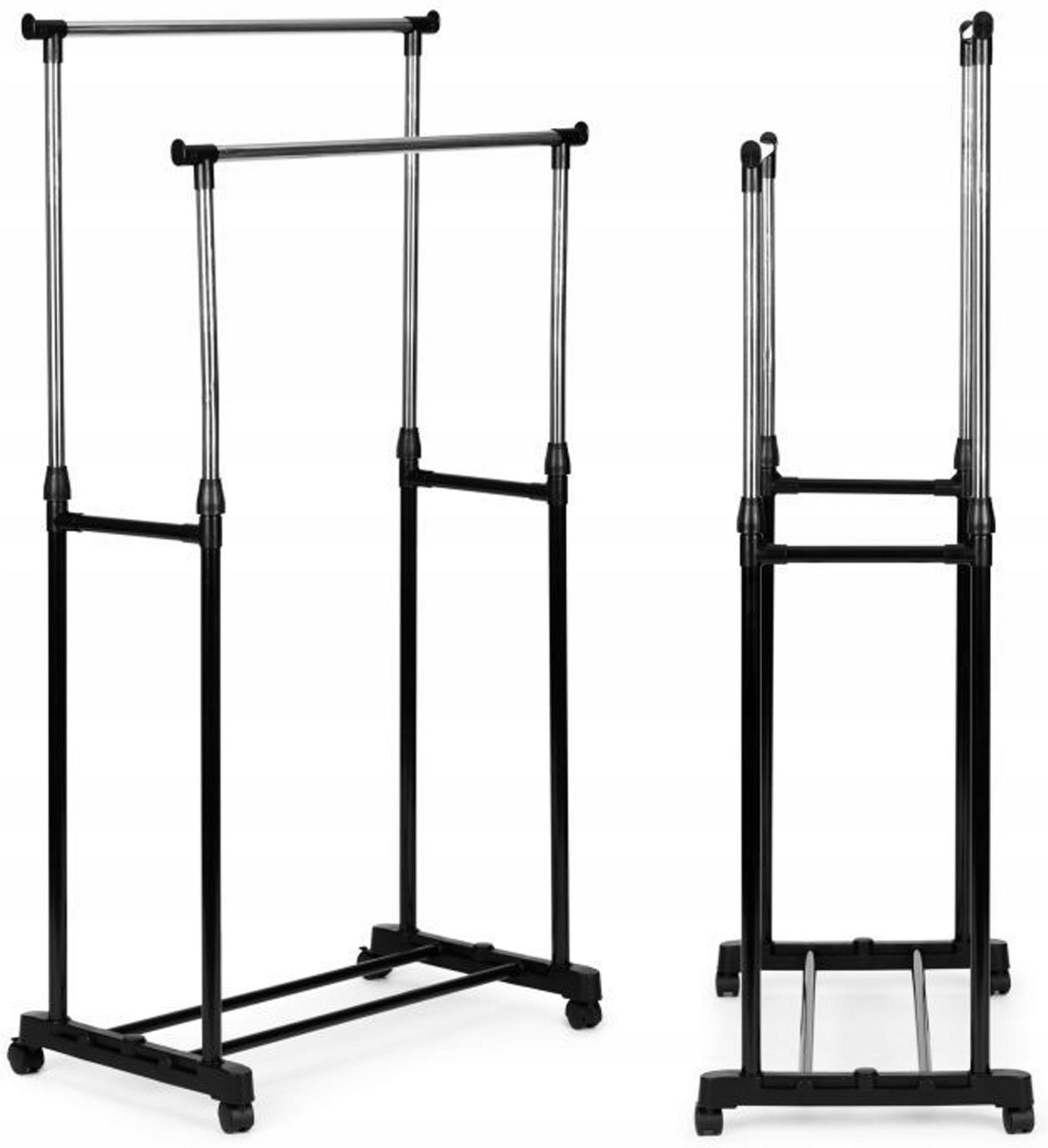 Podwójny Uniwersalny Wieszak Stojący na Ubrania z Regulacją Wysokości Kółka Bochnia