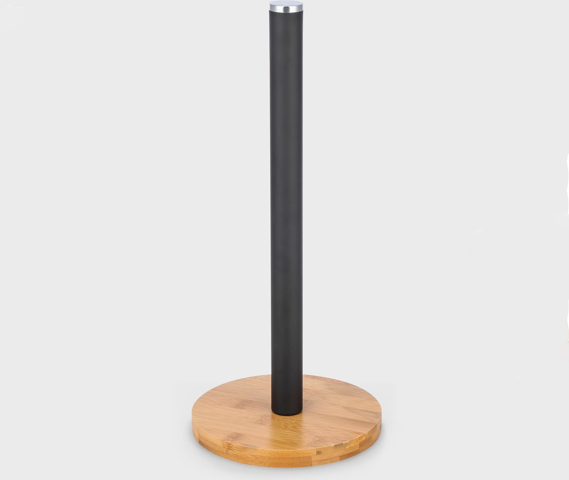 Ładny i minimalistyczny stojak na ręczniki papierowe to bardzo praktyczne udogodnienie, którego nie może zabraknąć na blacie kuchennym. Stojak jest wykonany ze metalu malowanego proszkowo; Podstawa stojaka jest bambusowa; Czarny, prosty stojak doskonale wpisuje się w modę na minimalistyczne, surowe wykończenia. Będzie pasować do nowoczesnych i industrialnych wnętrz;