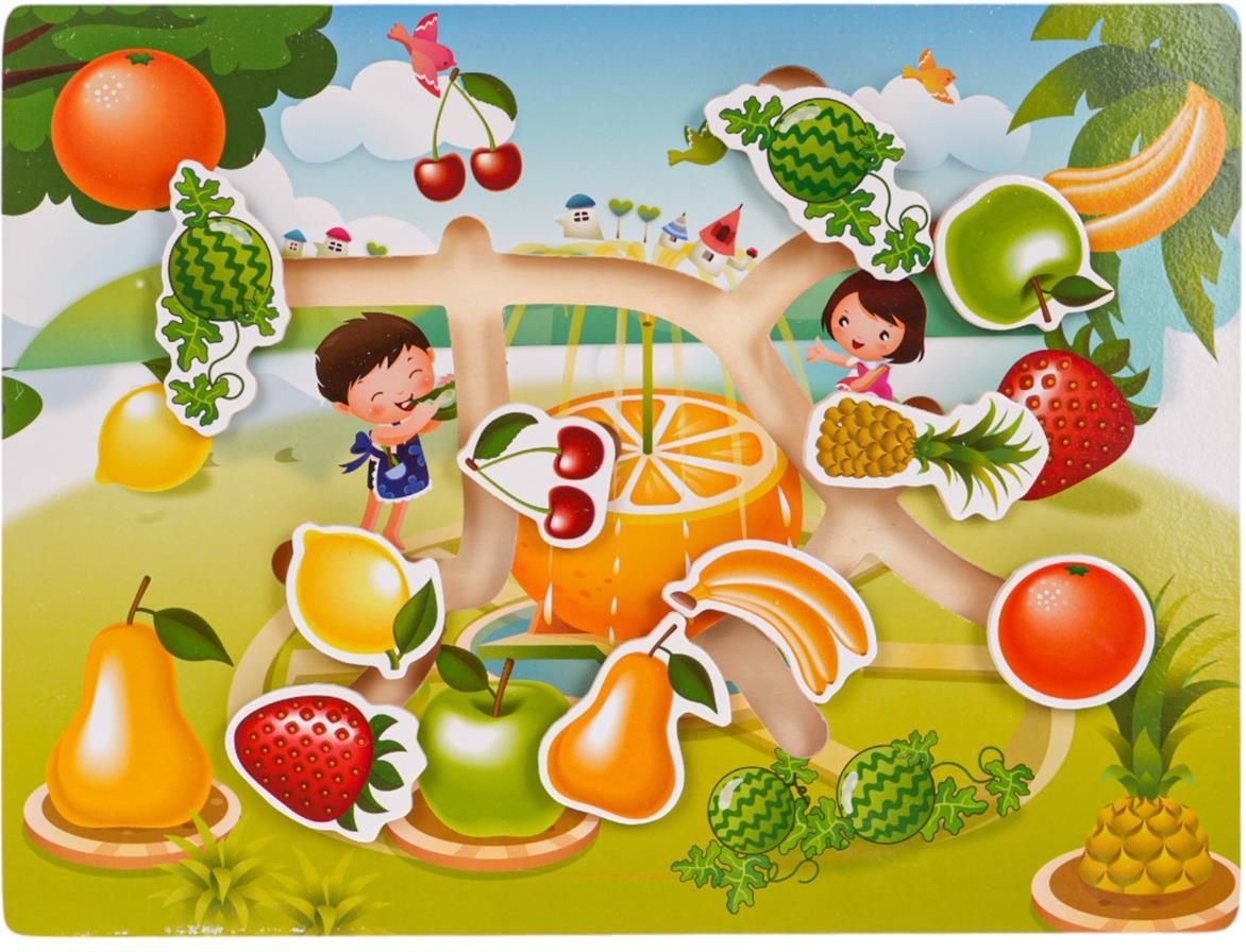 Opis Drewniany Zestaw Puzzli Owoce Warzywa Drewniana układanka, przekładanka z owocami dla dzieci od 3-go roku życia. Na drewnianej planszy znajduje się dziesięć elementów z rysunkiem owoców (2 x agrest, ananas, truskawka, banany, jabłko, czereśnie, pomarańcza, cytryna, gruszka), które powinny trafić we właściwe miejsca na planszy. Układanka ćwiczy koncentrację i logiczne myślenie, uczy spostrzegawczości, kształtów i kolorów. Funkcje zestawu drewniana konstrukcja zapewnia trwałość i wytrzymałość, żywe kolory przyciągają wzrok dziecka, ćwiczy koncentrację, uczy spostrzegawczości, rozpoznawania kształtów i kolorów, znakomity trening małych paluszków. Wymiary - układanka ok. 30 cm x 22,5 cm x 2 cm - opakowanie ok. 30 cm x 22,5 cm x 2 cm. Zawartość zestawu - drewniana przekładanka z 10 owocami.