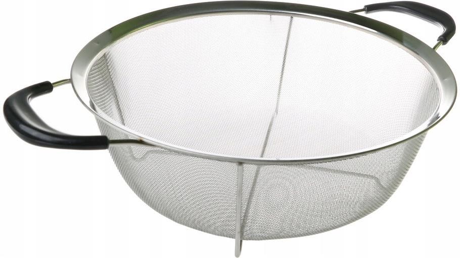 Przedmiotem aukcji jest sitko kuchenne Bardzo praktyczny i uniwersalny pomocnik kuchenny. Cechy produktu: Wykonane z wysokiej jakości stali o dużej odporności na rdzę Stal polerowana na połysk Posiada uchwyty pokryte czarnym tworzywem Stabilnie stoi Średnica: 22 cm Szerokość całkowita: 33 cm Wysokość: 9,3 cm