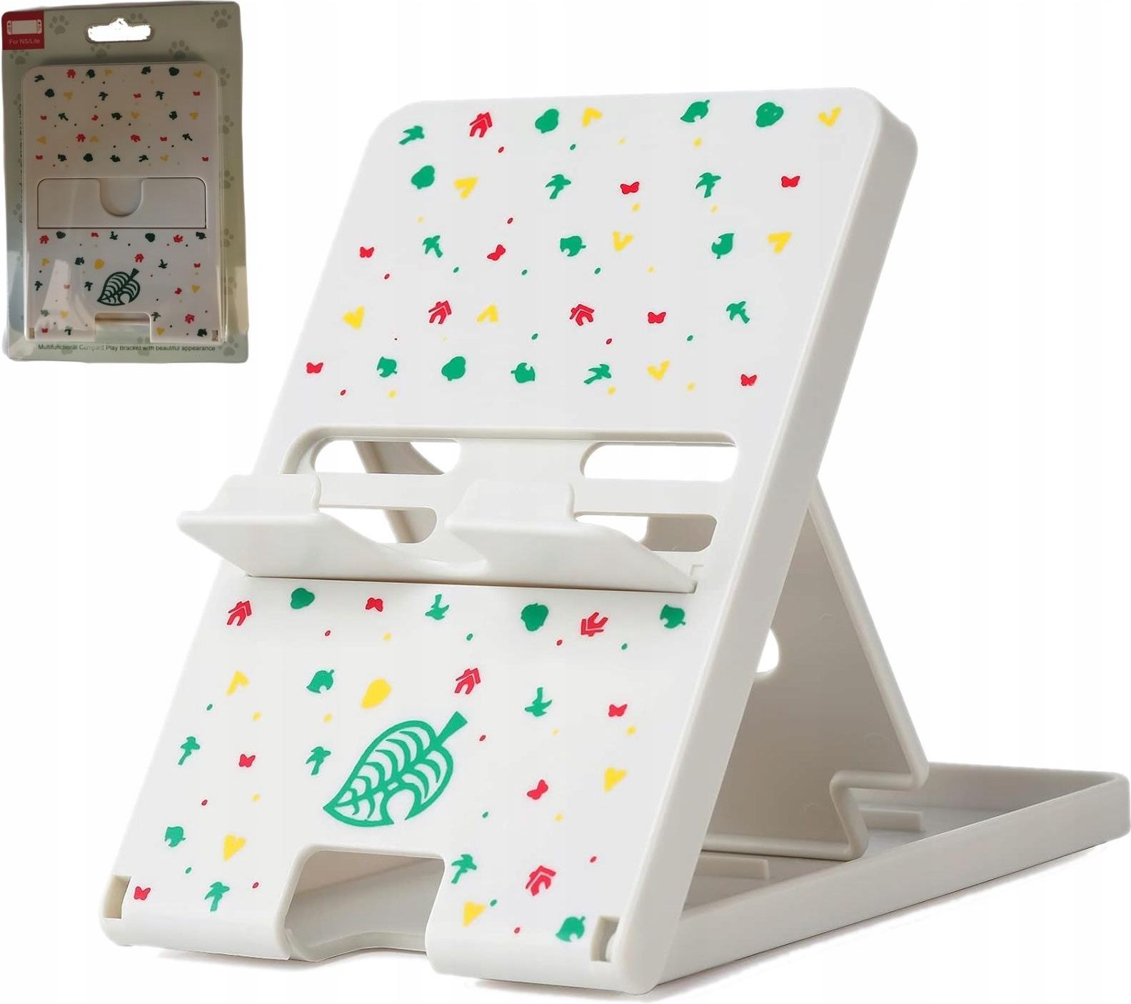 SKŁADANA PRZENOŚNA PODSTAWKA STAND STOJAK POD KONSOLE NINTENDO SWITCH 2 Składana podstawka do konsol Nintendo Switch to praktyczny i stylowy gadżet, który sprawdzi się zarówno w domu, jak i w podróży. Wykonana z lekkiego i wytrzymałego plastiku, posiada 4-stopniowąregulację kąta nachylenia, dzięki czemu możesz wygodnie ustawić ekran konsoli podczas grania, oglądania filmów lub korzystania z aplikacji. Stabilna konstrukcja z dolnymi ramionami zapewnia pewne podparcie i chroni przed zsuwaniem się urządzenia, a specjalne wycięcie pozwala na jednoczesne korzystanie z ładowarki w trakcie rozgrywki. Po złożeniu podstawka zajmuje bardzo mało miejsca, co czyni ją wyjątkowo poręczną i łatwą do przenoszenia – zmieści się w plecaku, torbie czy nawet w większej kieszeni razem z akcesoriami. Unikalny design inspirowany światem Animal Crossing – biały korpus ozdobiony kolorowymi motywami i charakterystycznym zielonym liściem nadaje jej wyjątkowego uroku i sprawia, że doskonale pasuje do klimatu gier Nintendo. To idealne rozwiązanie dla graczy, którzy chcą połączyć wygodę i funkcjonalność z oryginalnym wyglądem i cieszyć się pełnym komfortem rozgrywki na swojej konsoli Nintendo Switch w każdej sytuacji. Opis Ilość: 1x Składana podstawka Kolor: Beżowy; Wzór: Animal Crossing; Rozmiar: Złożona - 13,5x9,5x1cm; Gumowe nóżki zapewniające stabilizacje; 4 -stopniowa Regulacja kąta nachylenia (40-70 stopni) – dostosujesz ustawienie ekranu do własnych potrzeb. Stabilna konstrukcja – antypoślizgowe ramiona pewnie trzymają urządzenie. Wycięcie na kabel – możliwość ładowania podczas korzystania. Unikalny design; Lekka i Poręczna; Opakowanie: Karton producenta; Kompatybilność: Konsola Nintendo switch, switch lite oraz OLED Nintendo switch 2; Smartfony; Czytniki E-booków KONSOLA WIDOCZNA NA ZDJĘCIU NIE JEST PRZEDMIOTEM SPRZEDAŻY!