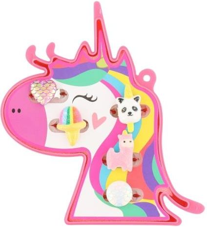 Zestaw pierścionków 5-częściowy Jednorożec Idź przez życie jako jednorożec w wesołych, kolorowych pierścionkach w różnych kształtach. Brokat dodaje blasku całości! Cechy: Z pojemnikiem do przechowywania w kształcie jednorożca Przechowuj pierścionki w załączonej piankowej poduszeczce Dostępne różne …