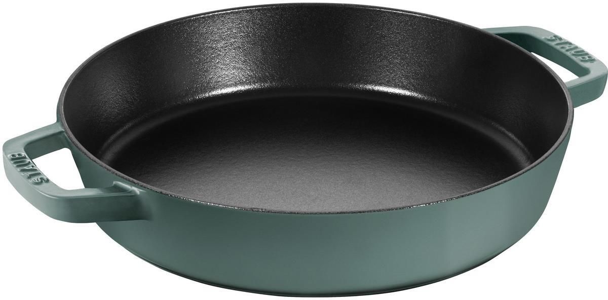 Staub - Patelnia żeliwna z dwoma uchwytami - 26 cm, Eukaliptusowy Chcesz pełnej kontroli nad swoim poczynaniami w kuchni? Firma Staub wychodzi Ci naprzeciw z patelnią do smażenia, posiadającą dwa uchwyty. Pewność każdego ruchu nigdy jeszcze nie była tak duża. Naczynie wykonano z żeliwa, …