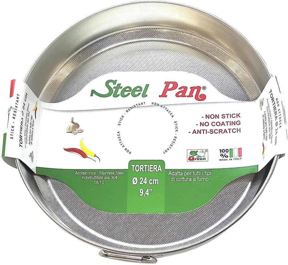 Steel Pan - Forma okrągła do pieczenia stalowa z nieprzywierającą teksturą 24x5 cm Formy do wypieków Stell Pan wykonane są z grubej nierdzewnej blachy kwasoodpornej z wtłoczoną, opatentowaną teksturą powierzchni do pieczenia, która sprawia, że wypieki nie przywierają. Firma Steel Pan produkuje …
