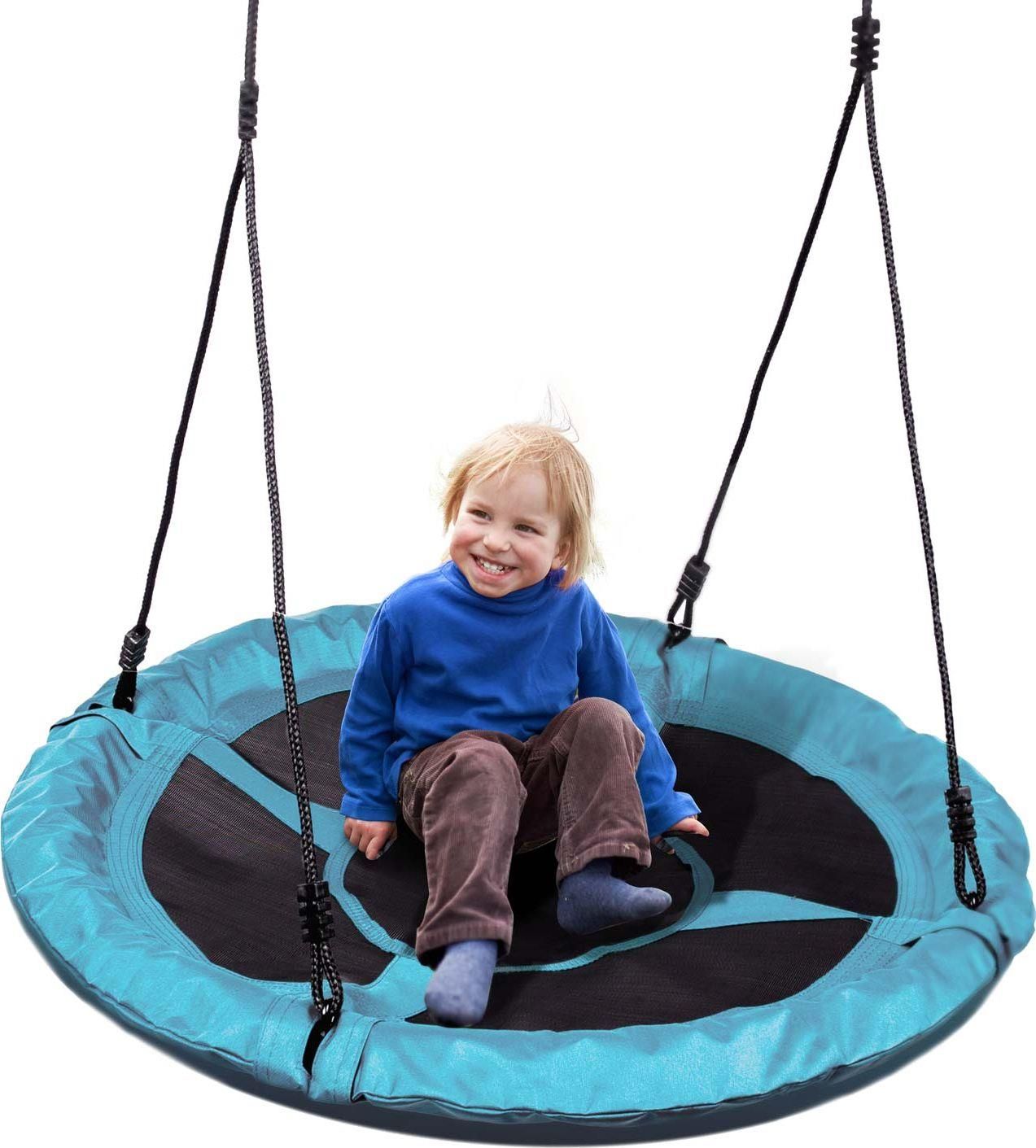 Huśtawka bocianie gniazdo, Swingo XXL, turkusowa, 95 cm. Huśtawka Swingo to świetny pomysł na zabawę dla młodszych i tych odrobinę starszych. Bujak na stalowej ramie pokrytej miękką pianką ochronną, z mocnego materiału o wielokrotnych przeszyciach i na grubych linach podwieszających. Zapewnia bezpieczeństwo, stabilność i trwałość. Poliester Oxford 600D, z którego zrobione jest siedzisko, jest wodoodporne i bezproblemowo się czyści. Najważniejsze cechy huśtawki: wygodne siedzenie wodoodporny materiał łatwe do wyczyszczenia mocne liny. Wymiary: średnica siedzenia: 95 cm długość linek: 180 cm maksymalne obciążenie: do 150 kg rama: stalowa liny: 100% poliester materiał: powlekany poliester Oxford 600D.
