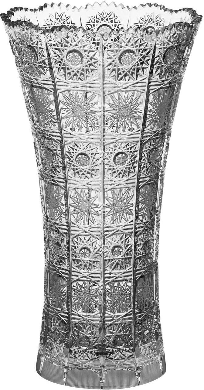 Kryształowy wazon o niebanalnej budowie i wzorze. Naczynie rozszerzane ku górze i stanowi interesującą dekorację. Na pewno będzie pasował do wielu aranżacji. Ozdobiony został klasycznym szlifem oraz wykończony elegancką falbanką. Produkty Bohemia charakteryzują się najwyższą jakością i precyzją wykonania. Większość naczyń wyprodukowana jest ze specjalnego rodzaju szkła kryształowego zwanego czeskim kryształem. Bohemia jest firmą z wieloletnią tradycją. Posiada w swej gamie kolekcje, które cieszą się uznaniem w wielu krajach. Oryginalny i niepowtarzalny kształt naczyń sprawia, że Bohemia stała się najbardziej rozpoznawalną marką w światowej produkcji szkła i kryształów. Zarówno wyroby szklane jak i kryształowe cenione są za jakość i nowoczesny design. Wiele kolekcji pochodzi od znanych projektantów. Przepiękne naczynia z czeskiej huty Bohemia z pewnością przyozdobią każde pomieszczenie, rozświetlą jego wnętrze i nadają uroku. Ten cudowny wazon to doskonały pomysł na prezent.