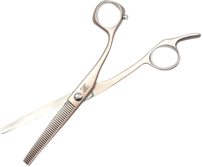 Profesjonalne degażówki fryzjerskie wykonane ze stali kobaltowej bardzo wysokiej jakości 440C. Bardzo wygodne, lekkie i trwałe. Idealnie układają się w dłoni. Miękki stoper z tworzywa sztucznego gwarantuje wygodną i cichą pracę. Rozmiar 6,5", czterdzieści zębów. Degażówki podwijające - przeznaczone do krótszych fryzur damskich i męskich. Ukierunkowujące wzrost włosa do dołu.