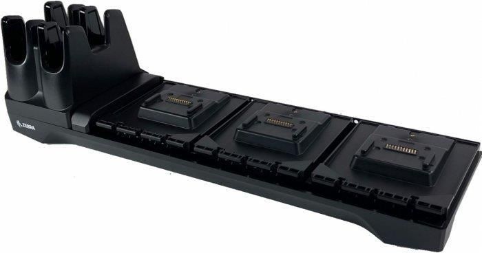 Stacja ładująca/komunikacyjna Zebra, 3 gniazda, 4 baterie, Ethernet ( CRD3S4T-RFD49-BASE-COM-1R )Stacja ładująca/komunikacyjna, ładuje 3x urządzenie i 4x zapasowy akumulator RFD40, ethernet, zamawiać osobno: 3x adapter do stacji ładującej, zasilanie zasilanie, kabel DC, kabel zasilający, pasuje do: RFD40...