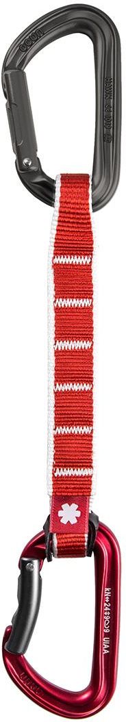 Ocun Ekspres Ocun Hawk QD Zoom PA 15/22 16 cm - red Ekspres Ocun Hawk QD Zoom PA 15/22 16 cm to propozycja dla wspinaczy, którzy starają się regularnie trenować, by zdobyć swoje pierwsze RP oraz tych mających na swoim koncie wiele dróg pokonanych w tym stylu. Zastosowano tutaj funkcjonalne karabinki o klasycznych zamkach oraz poliamidową taśmę. Taśma Zoom o nieregularnym, zwężającym się kształcie charakteryzuje się wysoką wytrzymałością. Nie trzeba obawiać się, jak będzie zachowywała się w trakcie pokonywania wymagających wspinaczkowych fragmentów. Dolny karabinek został dodatkowo zabezpieczony gumowym elementem o nazwie Biner Fix. Pozwala on nie tylko uniknąć sytuacji całkowitego wypięcia taśmy, przy mocniejszym szarpnięciu lub locie wspinacza. To także właściwa stabilizacja przekładająca się na wyższe bezpieczeństwo. Co więcej, każda wpinka przebiega wyjątkowo sprawnie, ponieważ karabinek nie obraca, a pozostaje we właściwej pozycji. Taśma ekspresu Ocun Hawk QD Zoom PA 15/22 16 cm charakteryzuje się zmienną szerokością, zwęża się w stronę karabinków. Jej kształt jest ergonomiczny, a poliamid oferuje zwiększoną odporność na przypadkowe uszkodzenia. Długość 16 cm wpływa dodatnio na sposób prowadzenia liny. Unikniesz przykrego w skutkach przesztywnienia asekuracji, które może mieć wpływ na wybieranie luzu. Obydwa karabinki ekspresu Ocun Falcon QD Zoom PA 15/22 16 cm posiadają rozwiązanie o nazwie Keylock. Dzięki niemu lina, taśma czy repsznur nie będą haczyły o zamek karabinka. Umożliwia ono płynne wykonywanie wszelkich operacji sprzętowych. Nie musisz obawiać się, że w kluczowym momencie lina nie będzie odpowiednio przechodziła przez karabinek. Górny karabinek został wyposażony w prosty zamek, do wpięcia w punkt, dolny jest właściwie wygięty, by w łatwiejszy sposób przebiegało wpinanie w niego Ekspres Ocun Hawk QD Zoom PA 15/22 16 cm - najważniejsze cechy; Wyposażony w poliamidową taśmę Zoom QD 15/22 o ergonomicznym kształcie; Górny karabinek Hawk Straight został wyposażony w rozwiązanie Keylock; Keylock zapobiega haczeniu zamka karabinka o linę; Dolny karabinek Hawk Bent z systemem Keylock; Zabezpieczenie dolnego karabinka za pomocą rozwiązania Biner Fix. Długość całości: ok. 29 cm Wymiary karabinka: ok. 9 x 5,2 cm