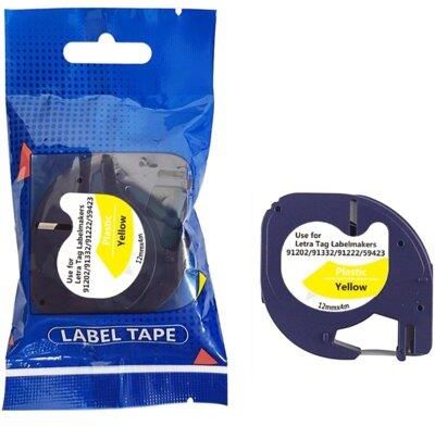 Taśma PRISM do Dymo LT 91202 12 mm x 4 m to przezroczysta, poliestrowa taśma z czarnym nadrukiem na żółtym tle i usuwalnym klejem, przeznaczona do drukarek LetraTAG (100H, 100T, 2000, QX50), odporna na rozdarcie i ścieranie, idealna do oznaczania płaskich oraz lekko zakrzywionych powierzchni w domu.