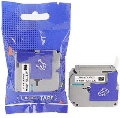 Taśma, zamiennik Brother M-K231 o szerokości 12 mm i długości 8 m, to nielaminowana taśma etykietowa wykonana z tworzywa sztucznego. Druk czarny na białym, w technologii termotransferowej. Przeznaczona do stosowania wewnątrz i na zewnątrz. Kompatybilna z urządzeniami etykietującymi Brother „P‑Touch”: Brother PT-55/55BM/55S/65/65SB/65SCCP/65SL/65VP, PT-70/70BBVP/70BM/70BMH/70HK/70HOL/70HOT/70SP/70SR, PT-80/80SCCP/85/90/M95/100/110